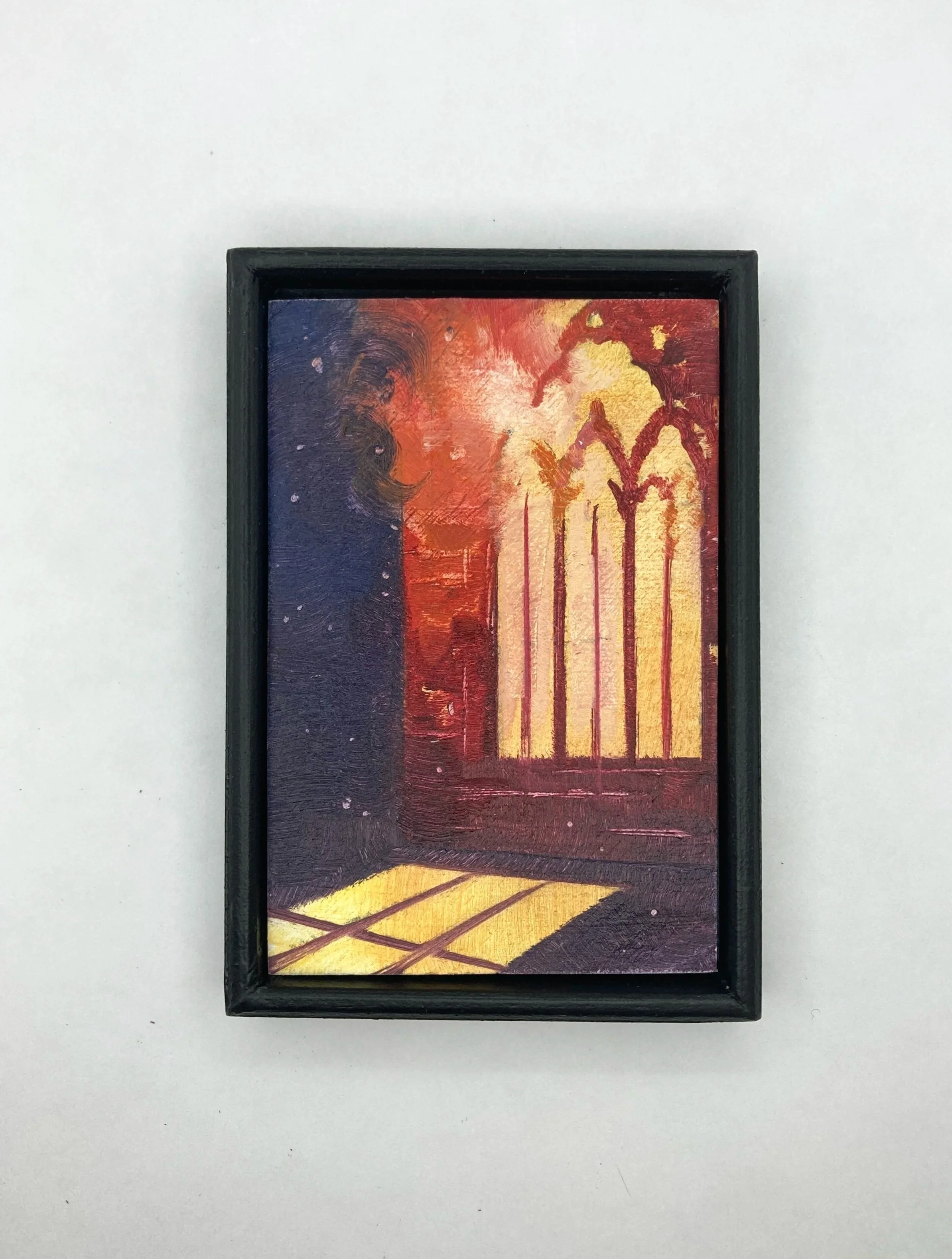 Corridor, 2025, Oil on Panel, 2 × 3”